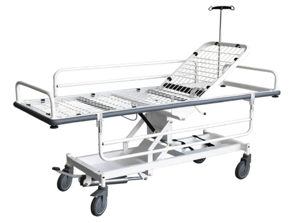 7) avec plusieurs crochets pour sacs de drainage de chaque côté